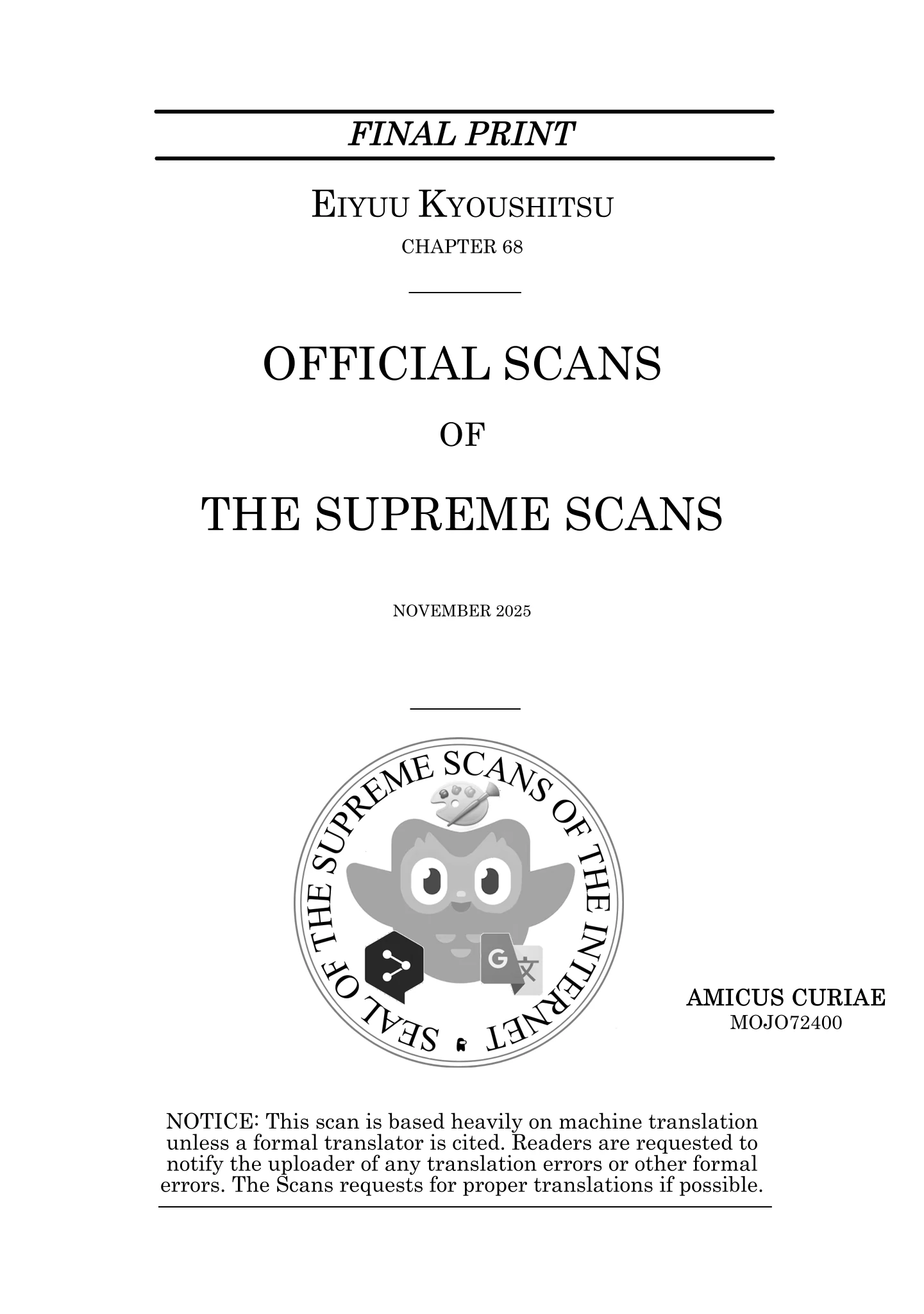 Read the latest manga Eiyuu Kyoushitsu Chapter 68 at Mangagojo.com . Manga Eiyuu Kyoushitsu is always updated at Mangagojo.com . Dont forget to read the other manga updates. A list of manga collections Mangagojo.com is in the Manga List menu.