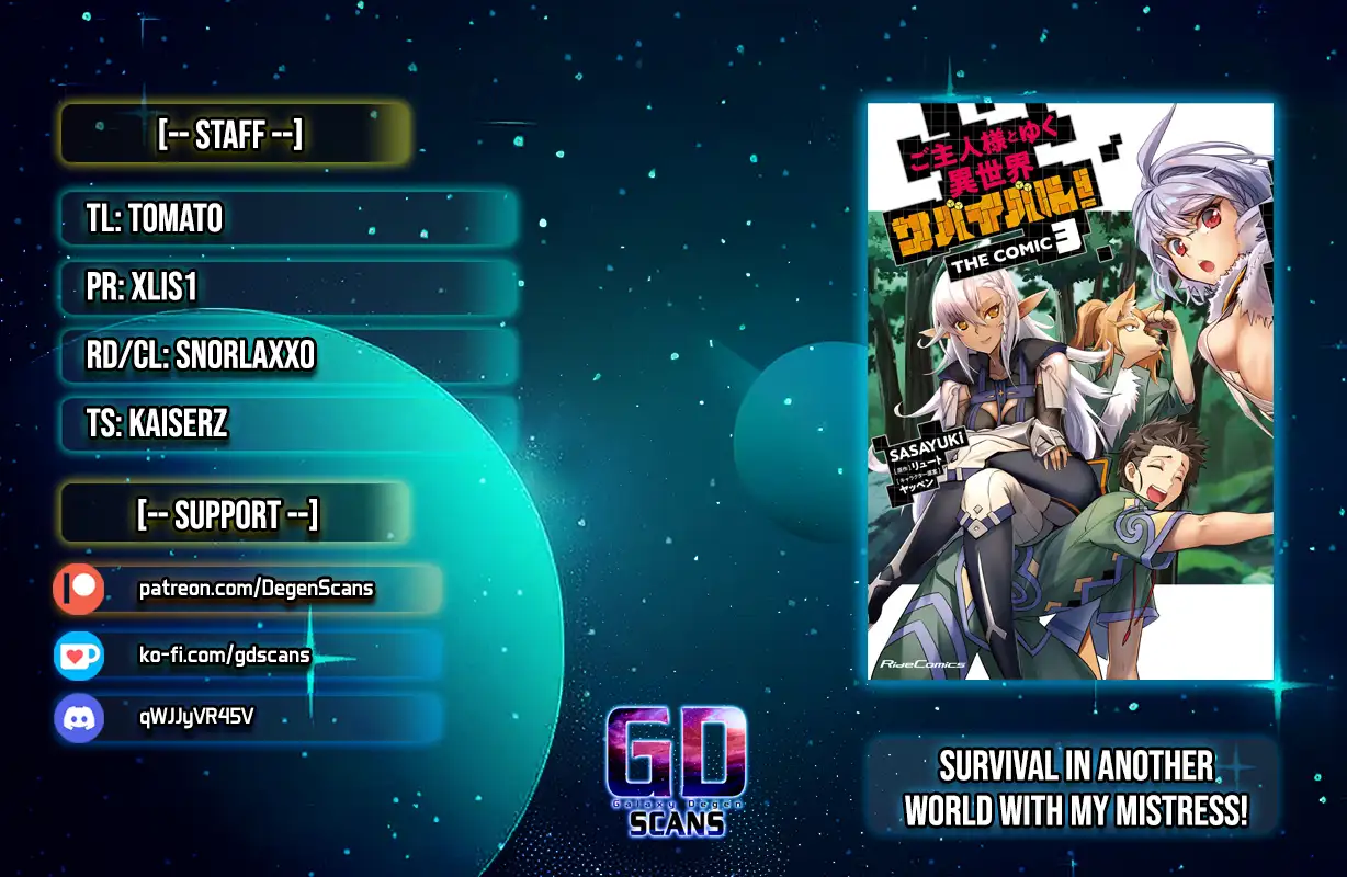 All chapters are in Goshujin-sama to Yuku Isekai Survival!