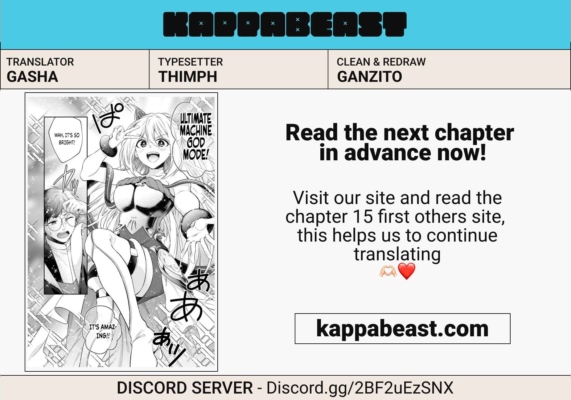 Read the latest manga Isekai Cheat Kaitakuki Chapter 14 at Mangagojo.com . Manga Isekai Cheat Kaitakuki is always updated at Mangagojo.com . Dont forget to read the other manga updates. A list of manga collections Mangagojo.com is in the Manga List menu.