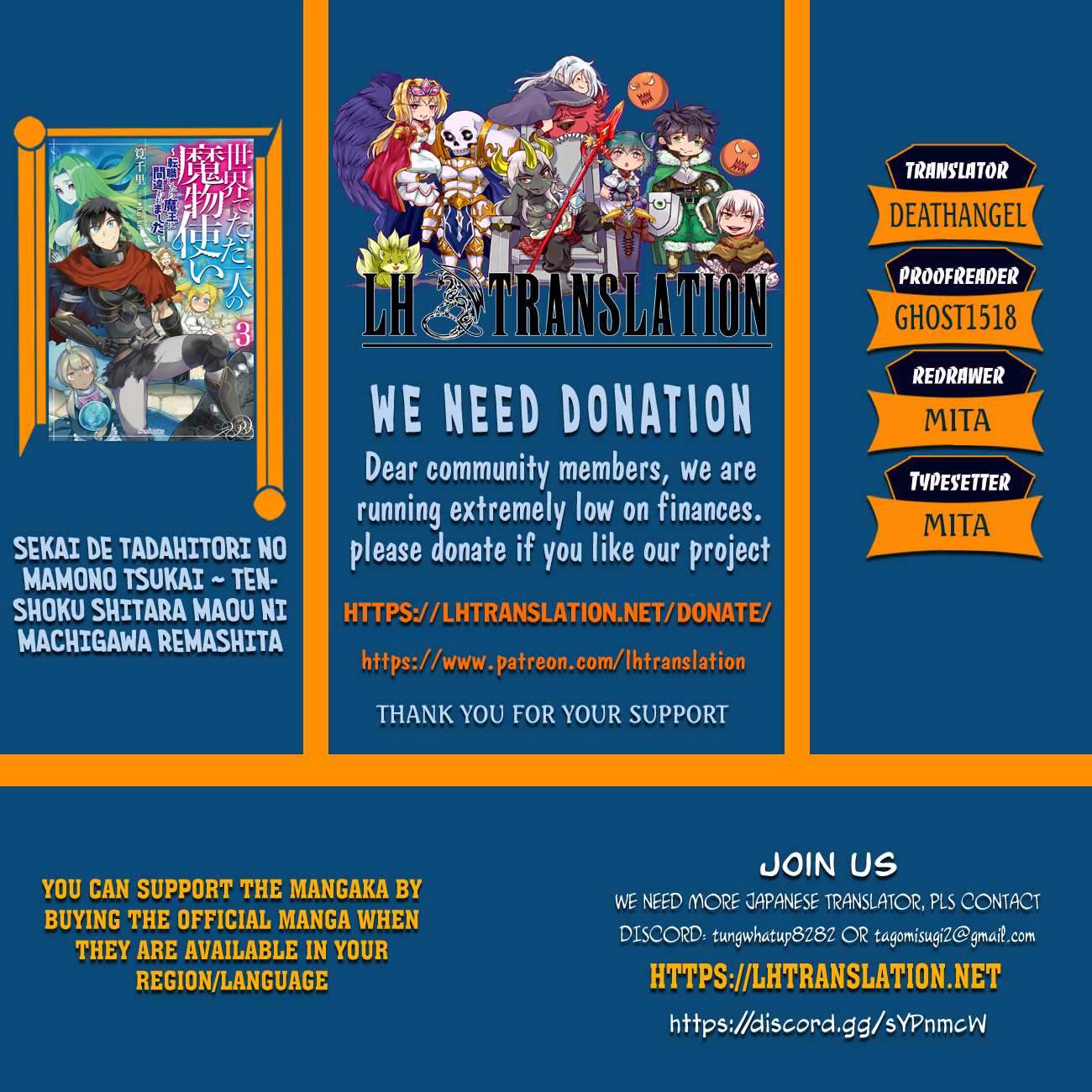 Read the latest manga Isekai De Tadahitori No Mamono Tsukai ~ Tenshoku Shitara Maou Ni Machigawa Remashita Vol.3 Chapter 13: Grand Desire at Mangagojo.com . Manga Isekai De Tadahitori No Mamono Tsukai ~ Tenshoku Shitara Maou Ni Machigawa Remashita is always updated at Mangagojo.com . Dont forget to read the other manga updates. A list of manga collections Mangagojo.com is in the Manga List menu.