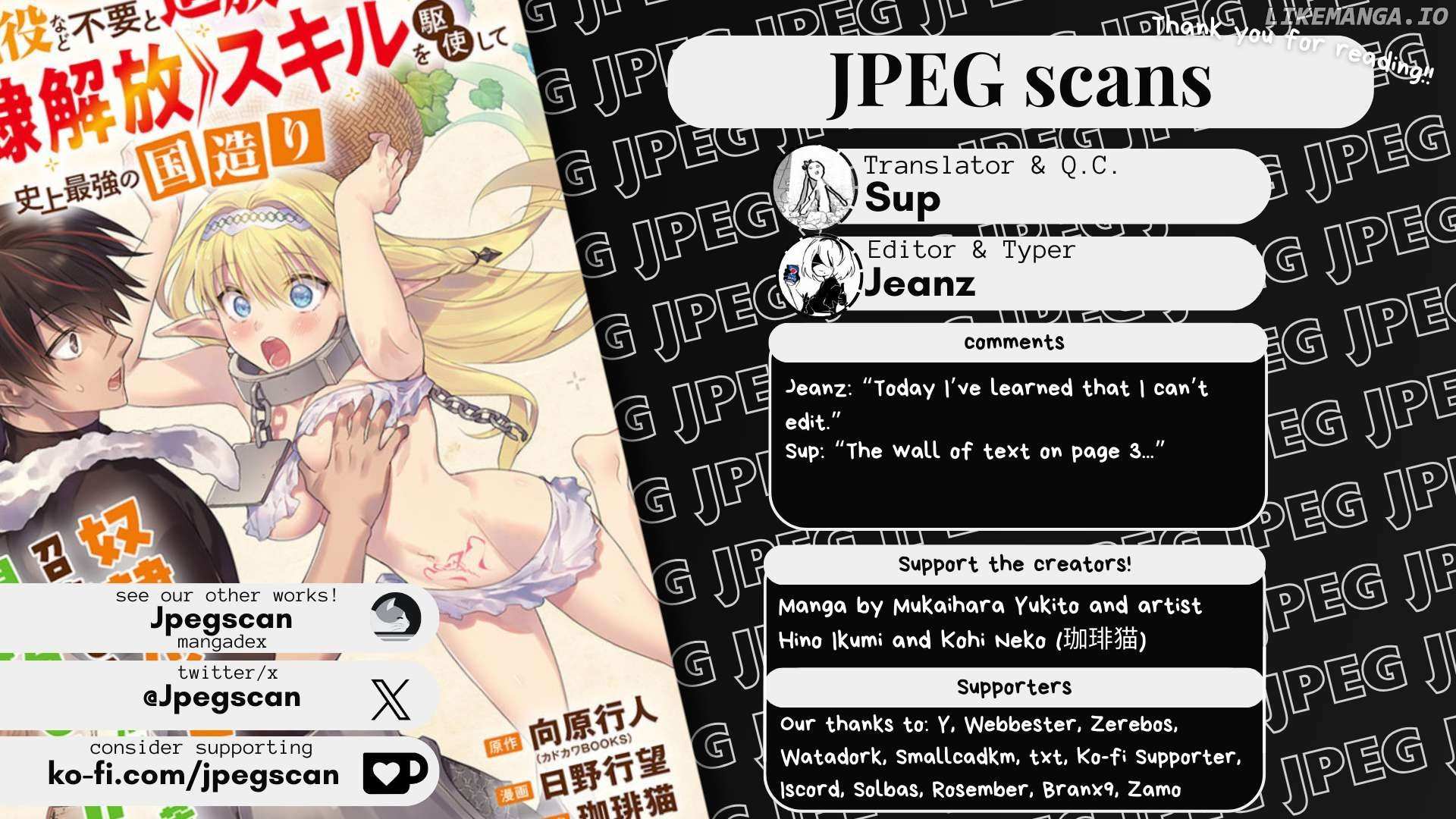 Read the latest manga Kabe-yaku nado fuyo to tsuiho sa reta S-kyu boken-sha, (dorei kaiho) sukiru o kushi shite shijo saikyo no kuni-dzukuri Chapter 6 at Mangagojo.com . Manga Kabe-yaku nado fuyo to tsuiho sa reta S-kyu boken-sha, (dorei kaiho) sukiru o kushi shite shijo saikyo no kuni-dzukuri is always updated at Mangagojo.com . Dont forget to read the other manga updates. A list of manga collections Mangagojo.com is in the Manga List menu.