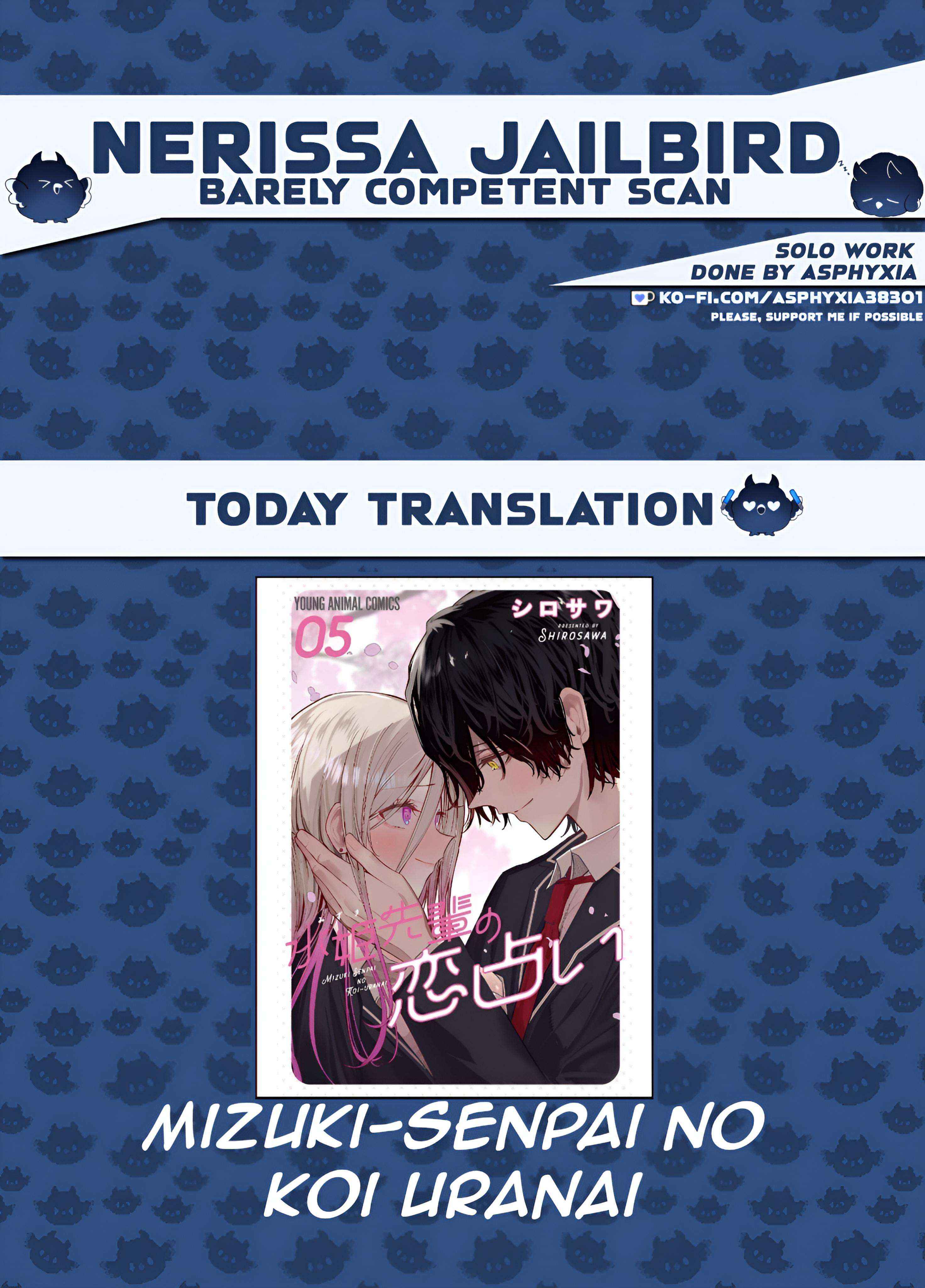 Read the latest manga Mizuki-senpai is Love Fortune-teller Chapter 53 at Mangagojo.com . Manga Mizuki-senpai is Love Fortune-teller is always updated at Mangagojo.com . Dont forget to read the other manga updates. A list of manga collections Mangagojo.com is in the Manga List menu.