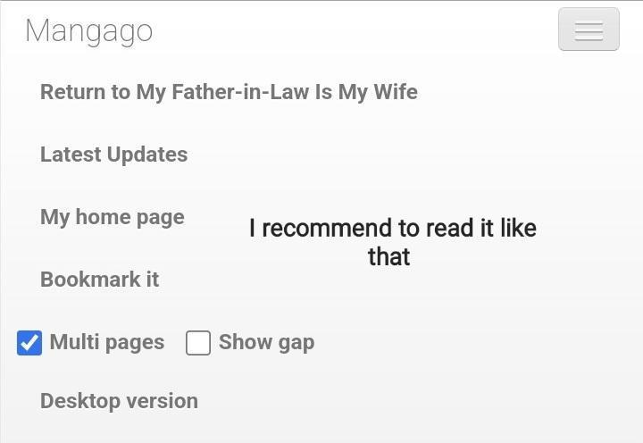 Read the latest manga My Father-in-Law is My Wife Chapter 173 at Mangagojo.com . Manga My Father-in-Law is My Wife is always updated at Mangagojo.com . Dont forget to read the other manga updates. A list of manga collections Mangagojo.com is in the Manga List menu.