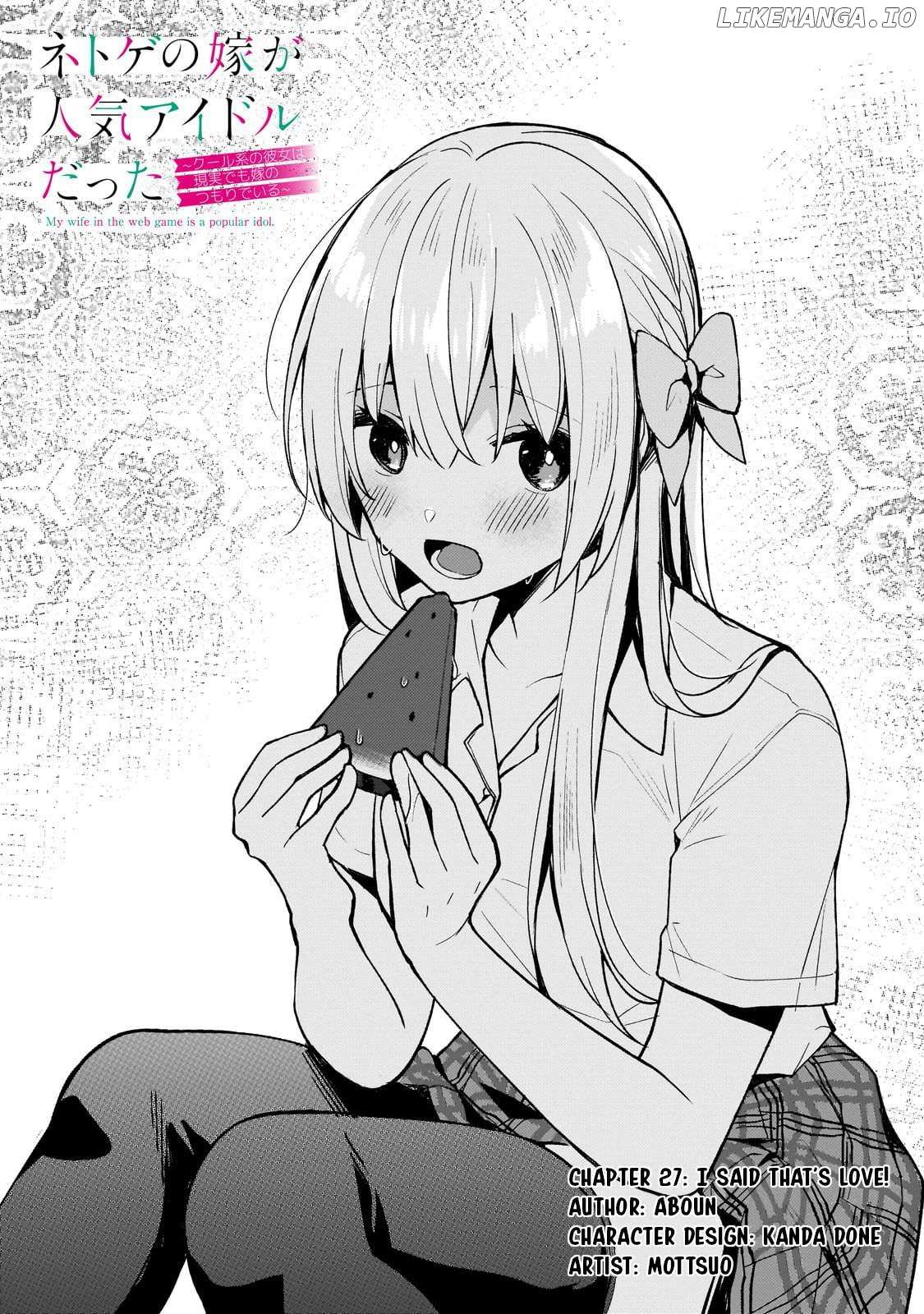 Read the latest manga My Web Game Wife Is a Popular Idol IRL Chapter 27 at Mangagojo.com . Manga My Web Game Wife Is a Popular Idol IRL is always updated at Mangagojo.com . Dont forget to read the other manga updates. A list of manga collections Mangagojo.com is in the Manga List menu.