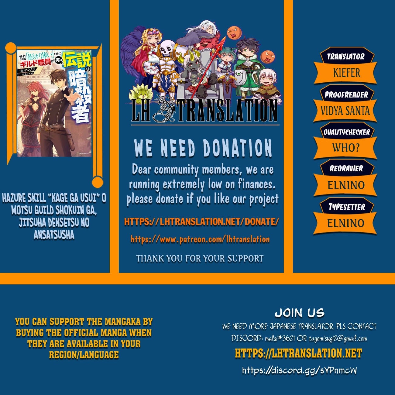 Read the latest manga The Guild Official With The Out-Of-The-Way Skill “Shadowy” Is, In Fact, The Legendary Assassin Chapter 22: Hate Equals Love at Mangagojo.com . Manga The Guild Official With The Out-Of-The-Way Skill “Shadowy” Is, In Fact, The Legendary Assassin is always updated at Mangagojo.com . Dont forget to read the other manga updates. A list of manga collections Mangagojo.com is in the Manga List menu.