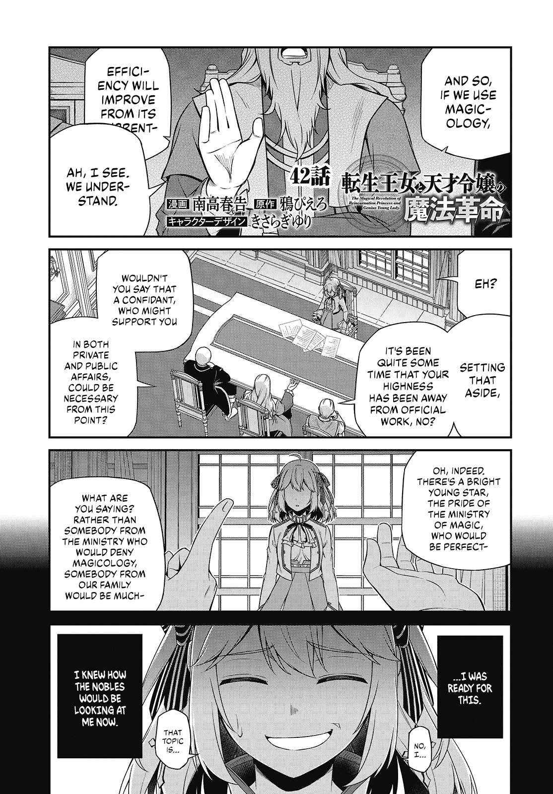 Read the latest manga The Magical Revolution Of The Reincarnated Princess And The Genius Young Lady Chapter 42 at Mangagojo.com . Manga The Magical Revolution Of The Reincarnated Princess And The Genius Young Lady is always updated at Mangagojo.com . Dont forget to read the other manga updates. A list of manga collections Mangagojo.com is in the Manga List menu.
